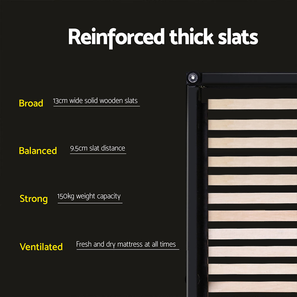 Give your bed a touch of modernistic appeal with our Artiss Neo Bed Frame. Wrapped in premium PVC leather, the bed frame is at once smooth to the touch and luxurious all round. The bedhead provides ample space for a relaxing back rest when you need to sit up on the bed to read, surf the net or catch a movie on your device. You will surely appreciate the high-density foam that fills the bedhead and every other inch of the bed frame for a well-padded look and feel. Within the frame, a highly flexible wooden arched slat base allows the bed to flex properly so that a person who lies on the bed can move around without unduly disturbing the other. Not least, the sturdy wooden frame is also held together by heavy-duty metal connectors so that you never have to worry about the stability or durability of the bed frame. If elegant sleep is what you after, look no further than the Artiss Neo Bed Frame to make your dreams come true.