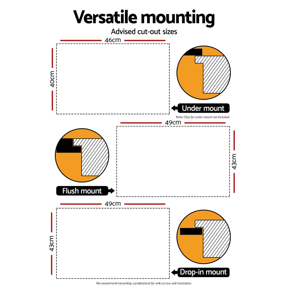 Cefito 51cm x 45cm Stainless Steel Kitchen Sink Under/Top/Flush Mount Black