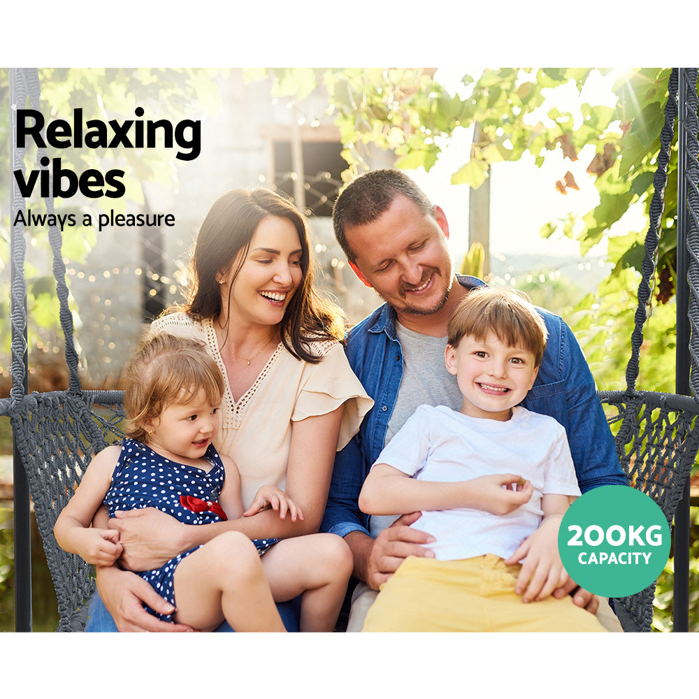 Gardeon Double Swing Hammock Chair with Stand Macrame Outdoor Bench Seat Chairs