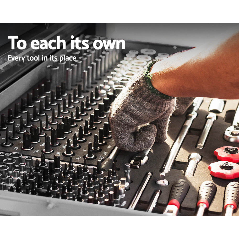 Giantz 9 Drawer Mechanic Tool Box Cabinet Storage - Black & Grey